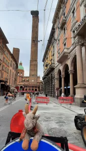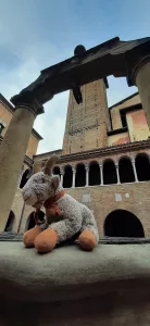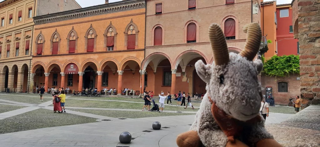 [FR] Sache que la Ville de Bologne fut bâtie au quatorzième siècle. Sa particularité est de posséder de nombreuses arcades. S’il pleut beaucoup, tu pourras poursuivre ta balade par en dessous de ces passages aux multiples arcs. Bonne promenade Rocoli, le cabri !